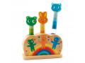 Un jouet pop-up en bois naturel et aux couleurs vives, destiné aux tout-petits dès 12 mois. Un socle joliment illustré et trois bâtonnets « animaux » à placer dans les trous pour les faire bondir.