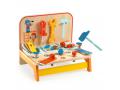 Le Bricotoo est fabriqué en bois de hêtre, un matériau durable et sûr pour les enfants. Les outils sont en plastique sans phtalates et les peintures utilisées sont non toxiques et conformes à la norme de sécurité des jouets EN71. Pour l'entretien, il suffit de nettoyer les pièces avec un chiffon humide et de les laisser sécher à l'air libre.