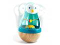 Un culbuto pingouin, destiné aux petits dès 10 mois. Quand il se balance, on observe par transparence les billes et les anneaux qui bougent. Renversé, le jouet revient toujours à la verticale.
