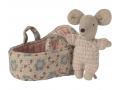 Maileg - 17-5004-00 - Bébé souris dans son couffin - Rose dimension 6cm x 10cm x 6 cm