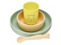 - Ensemble composé de quatre pièces : assiette, bol, tasse et cuillère, adaptés aux petites mains.